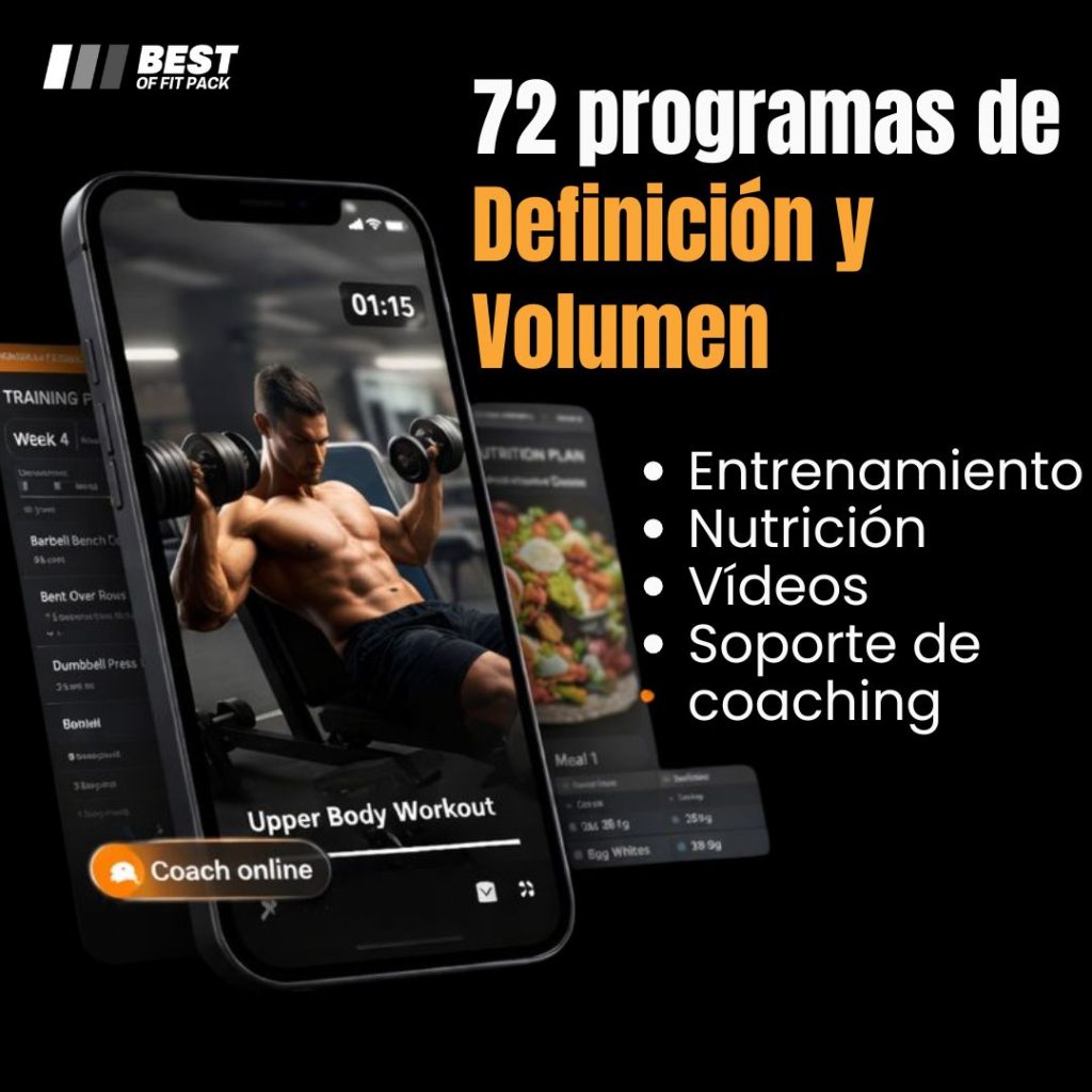 72 PROGRAMAS DE DEFINICIÓN Y VOLUMEN + GUÍA DE NUTRICIÓN + COACHING 6 DÍAS A LA SEMANA